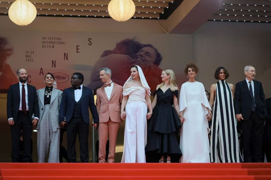 由法国著名电影人朱丽叶·比诺什(中)领衔的主竞赛单元评审团,均以盛装亮相