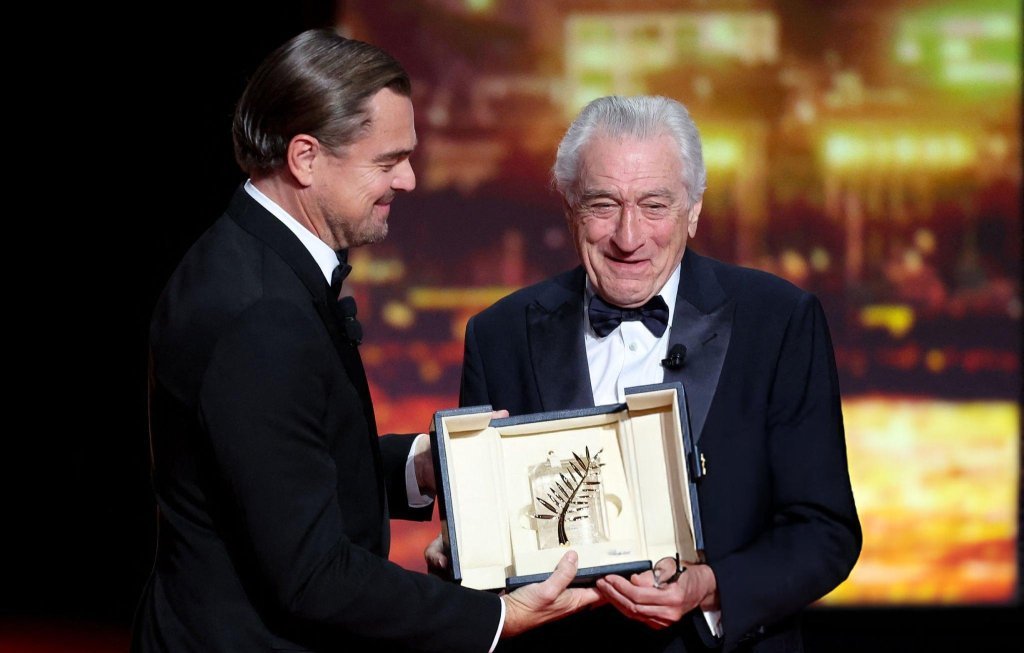 罗伯特·德尼罗从莱昂纳多·迪卡普里奥手中接过终身成就金棕榈奖