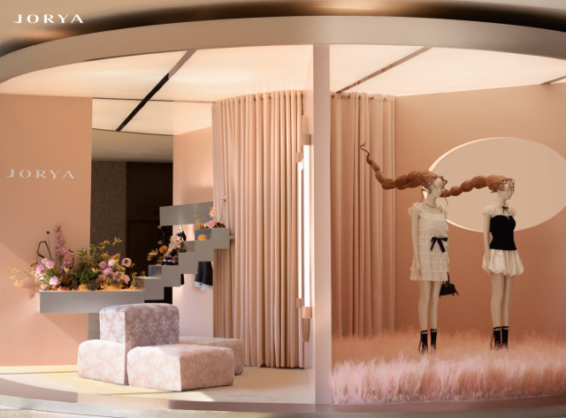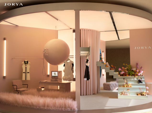 本次JORYA限时快闪空间以剧场语言解构女性日常的多元维度,通过四幕场景展现了J Lady从职场到自我、从日常到灵魂深处的转变与共鸣。JORYA通过多元的闺蜜空间向观众传递服装不仅是外在穿搭,更是一种心灵深处的表达。快闪空间内层次丰富的花卉、柔软的沙发、以及服饰轻盈飘逸的剪裁、设计等元素,每一个细节都生动演绎J Lady的精致日常。