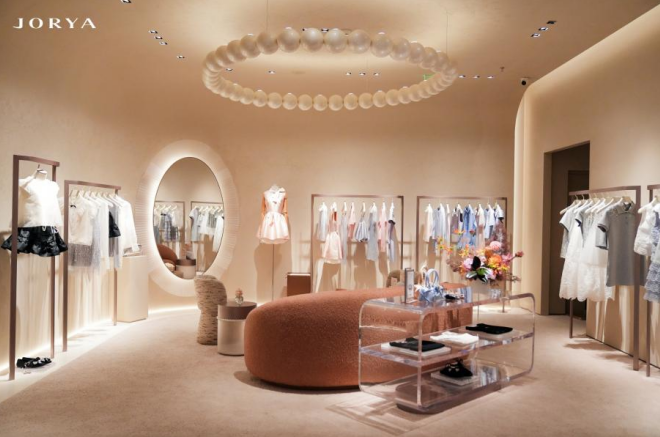 值得关注的是,今年全新开业的JORYA西安万象城门店延续品牌标志性美学,以简洁大气的空间布局结合柔美曲线与现代艺术装置,巧妙呈现出精致与浪漫并存的品牌调性。店内陈列以层次分明的动线引导顾客深入探索每一件臻品,营造沉浸式购物体验,进一步诠释JORYA“用匠心工艺为每位女性织造华丽绮境”的品牌精神。