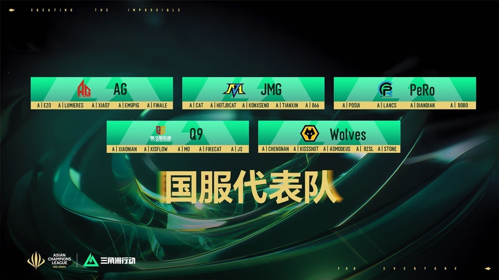 AG、JMG、PeRo、情久、狼队组成的TEAM A强势突围,斩获国服代表队资格。5月17日-18日,中日韩泰各个赛区代表战队将登陆英雄亚冠ACL总决赛舞台,在国际化赛场续写战术FPS新篇章。