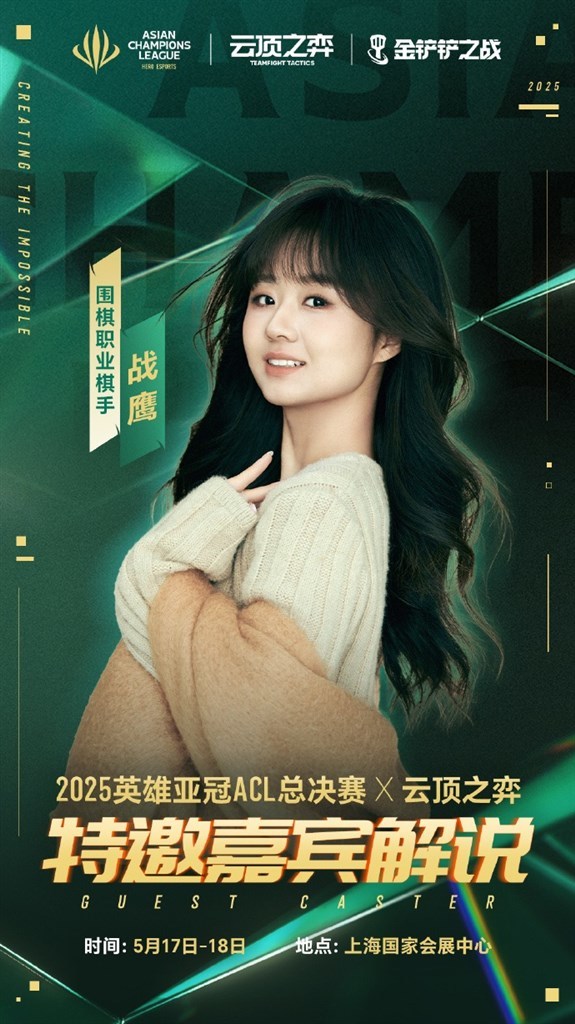 5月17日-18日,棋手战鹰将出任2025英雄亚冠ACL总决赛×云顶之弈特邀解说嘉宾!她将以独特战略视角剖析赛事,凭借其强韧的棋手心态,在电竞赛事解说席展现多维策略解读。