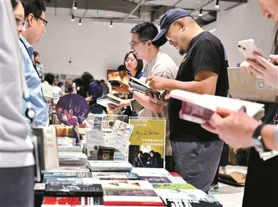 2025“做書图书市集·北京”昨日在北京时代美术馆举办,作为2025年“书香海淀阅享青春”世界读书日系列活动之一,活动汇聚170余家来自全国各地的参展商,观众在参观、购书的同时,还可参与文化沙龙等活动。图为观众在图书市集上选购书籍。