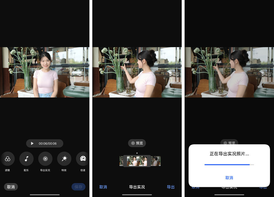 而且操作过程非常简单,只需通过相册编辑界面,轻松选择我们想要的3秒片段,然后一键转化成一张可以动的实况图片,而这张Live图的质量与拍摄的视频一样出色,甚至没有任何细节的丢失。