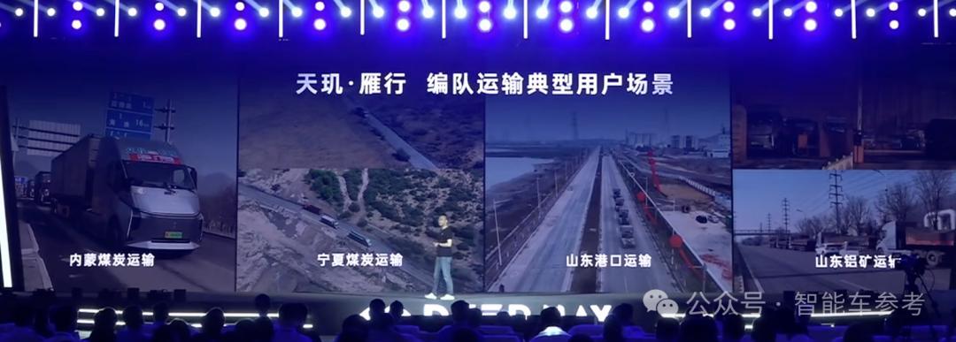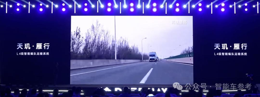 针对高频运输场景打造,整个编队头车有人,后续跟4辆无人卡车。且为后车单独开发了天玑·独行L4级自动驾驶系统,背后是DeepWay自研的大模型、端到端系统。