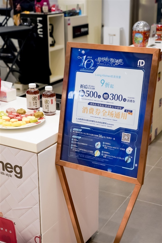 早上10点,新世界大丸百货开门迎客,消费者如潮水般涌入。记者采访了解到,作为店庆重磅福利,新世界大丸百货推出多档消费满赠活动:奢侈品满3000元赠300元券,国际一线化妆品满500元赠150元券,百货类满500元赠300元券。店庆当日,500张“500元团1000元”消费券现场开抢,更有大疆相机、富士拍立得等限量礼品加赠。消费者王女士表示:“化妆品优惠叠加购物券,算下来比免税店还划算,一早就来排队了。”