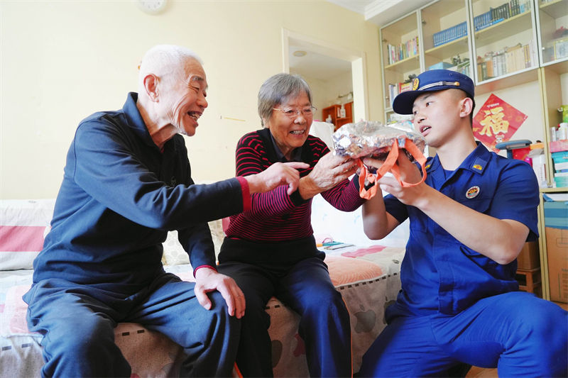 北京青年报记者5月17日从朝阳区了解到,朝阳区和平街街道辖区爱心企业与街道、社区日前共同走访慰问辖区高龄老人邢大爷和王大妈夫妇,以及空巢老人董大爷和刘大妈夫妇,将企业捐赠的消防“四件套”(独立烟感报警器、灭火器、灭火毯、逃生面罩)送到辖区独居、失能、残疾等生活困难老年群体的手中。