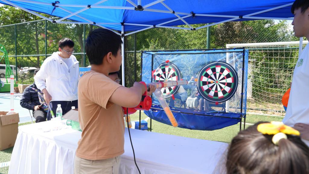 公众在中国科学院力学研究所体验“乒乓球机关炮”。(中国科学院力学研究所供图)