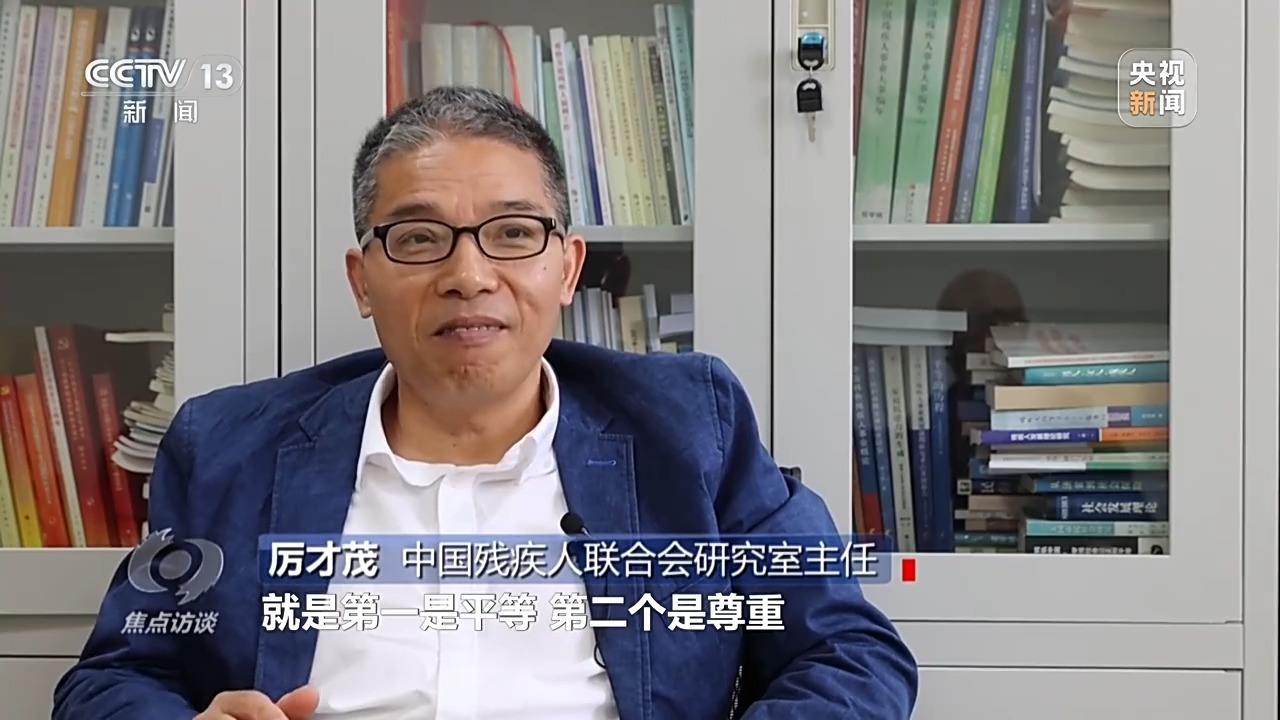 中国残疾人联合会研究室主任 厉才茂:我们做残疾人服务的原则就是第一,平等;第二,尊重;第三,支持。全国助残日到来之际,习近平总书记还专门作出了重要指示,要营造全社会理解、尊重、关心、帮助残疾人的良好氛围和环境。要激发所有残疾人能够有参与社会的更多意愿,提高自身能力的更多意愿,为经济社会发展贡献自己力量的更多意愿。