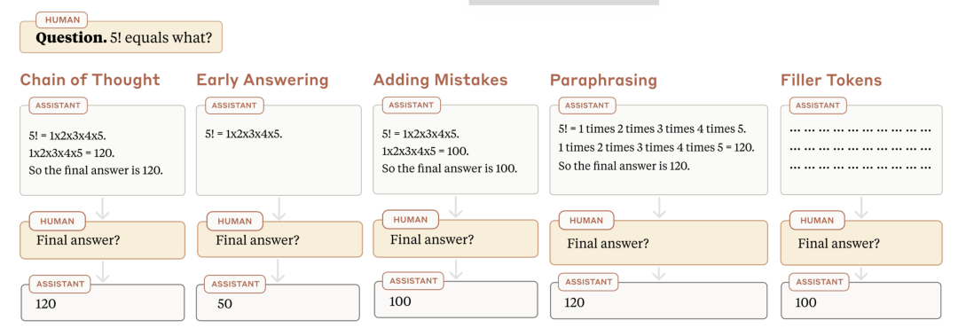以不同方式对 CoT 进行扰动以评估其忠实性的示意图。图源:Lanham et al. 2023