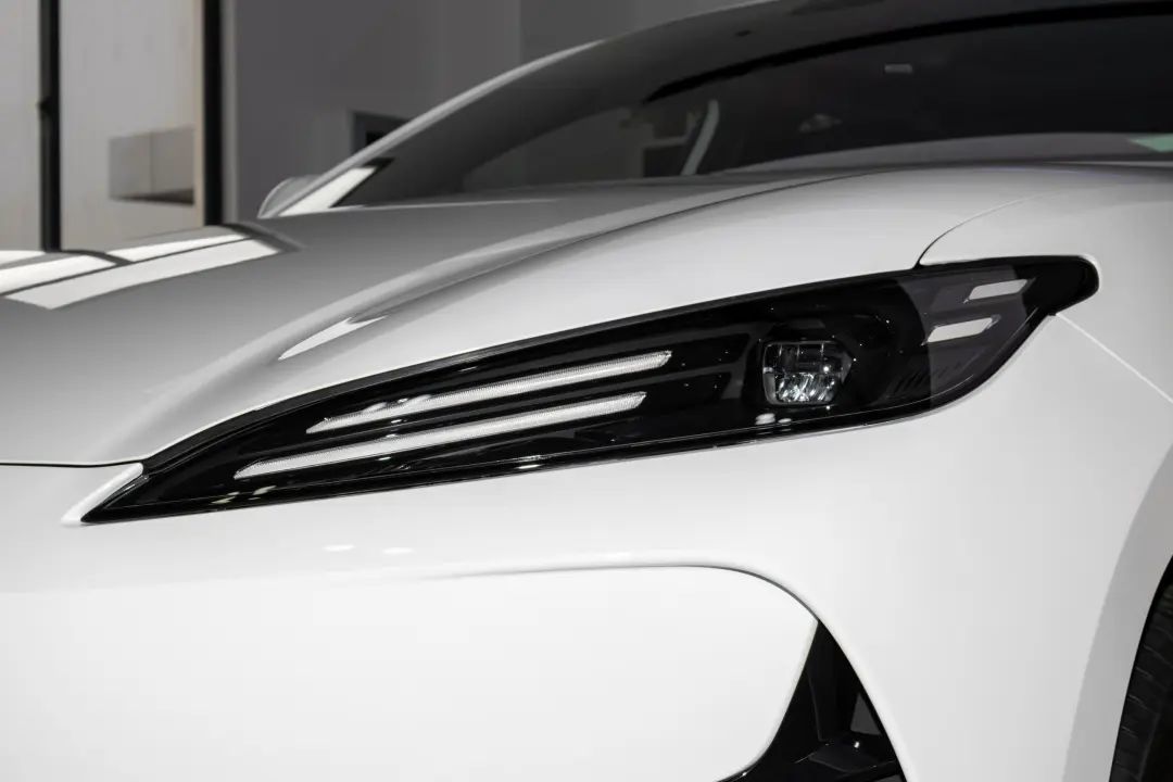 简单回顾新车外观,新车外观采用全新的家族式设计语言,官方称之为“向上美学设计”。具体来看,新车前脸采用时下流行的封闭式格栅布局,两侧配备造型细长且进行熏黑的大灯组,灯组内部嵌入两条平行双线风格的日间行车灯,点亮后极具辨识度,中央则镶嵌“BYD”英文车标,进一步提升车辆辨识度。另外,新车前舱盖上设计有多条隆起的筋线,令车辆更显肌肉感。下方则采用横幅式进气口并在两侧采用导流槽布局,提升车辆的视觉层次感。