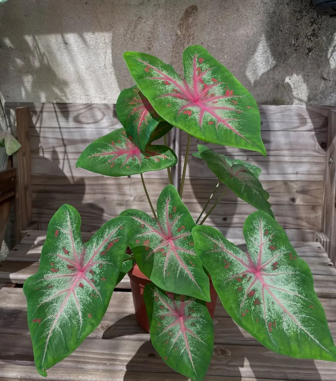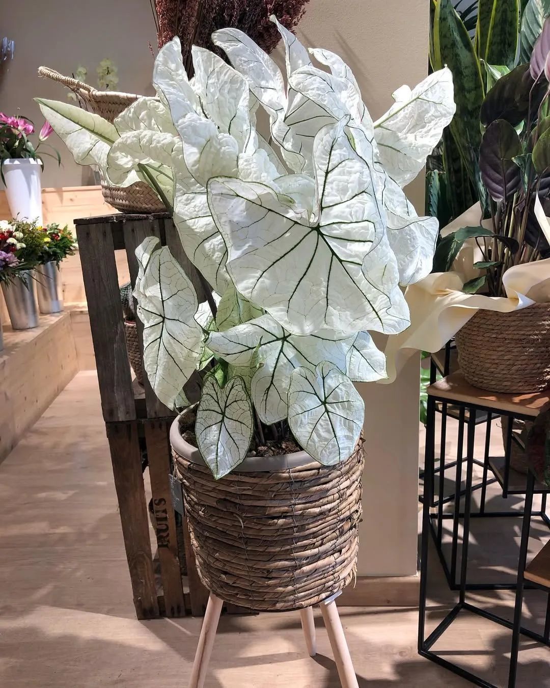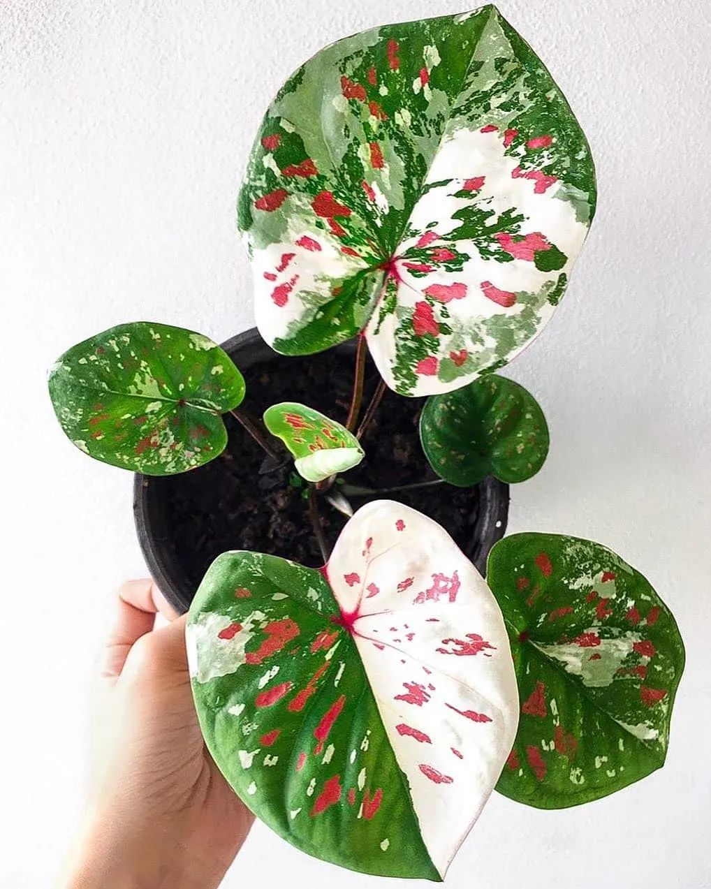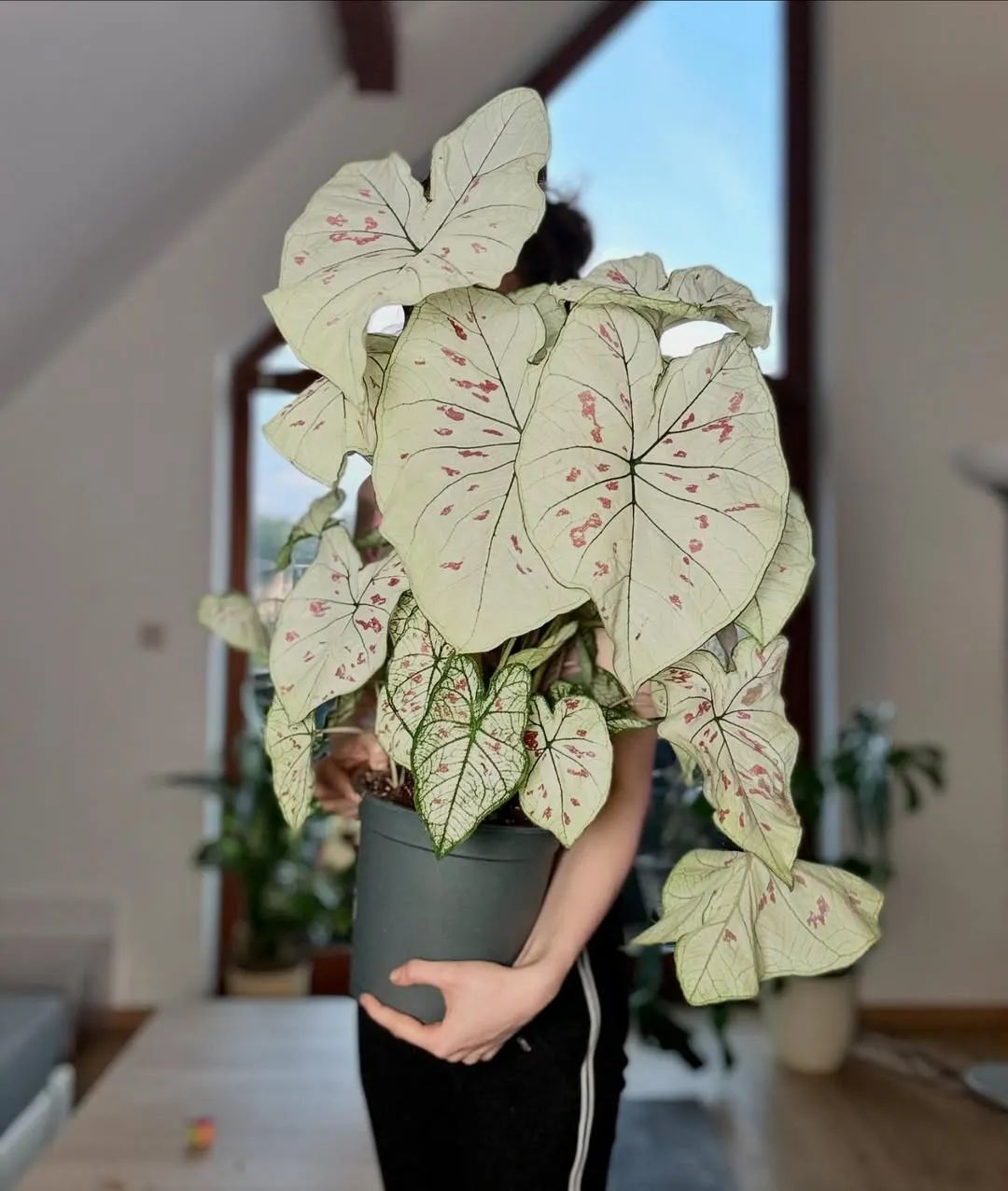 彩叶芋也叫花叶芋、五彩芋,就是因为它有着绚丽壮观的叶片,它是非常热门的热植,这是一种观叶植物,有的叶子斑斓艳丽,也有清新淡雅的品种。