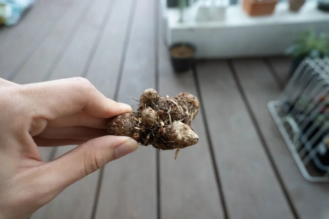 栽种的时候就是要浅埋,种球顶部微微露出土,面芽点朝上种好之后浇一点点水,保持土壤微微湿润,之后等土壤特别干了再浇水,摆放在有适当散射光的位置,温度在20度以上,一般在一周之后就会发芽生根了。如果温度太低,它的块茎会烂掉。