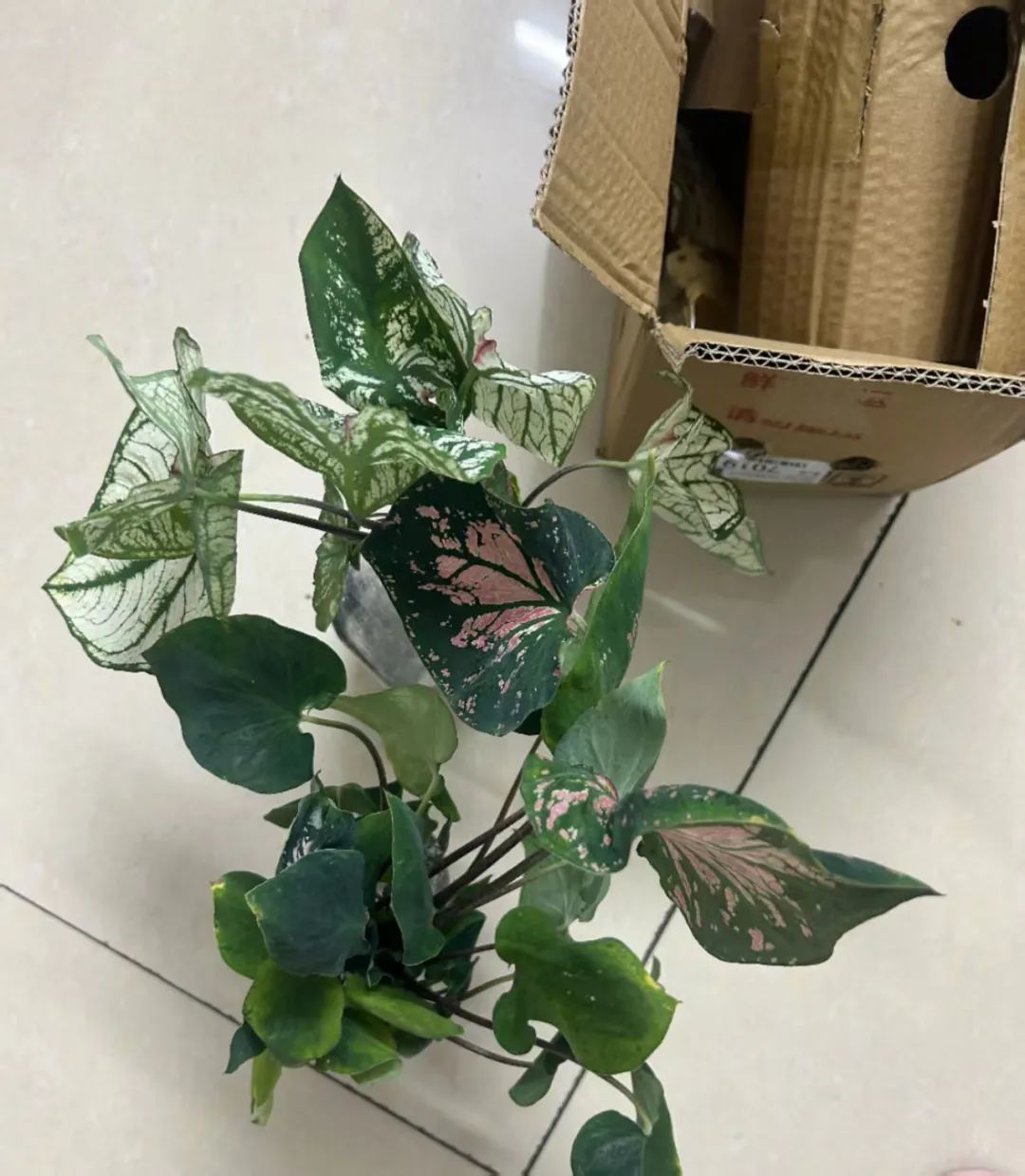 刚买的盆栽彩叶芋先不要换盆,先养在通风、半阴的地方。先不要晒太多阳光,缓慢增加一些散射光,同时检查一下盆土干不干,盆土比较轻了,比较干了,就缓慢浇透水。