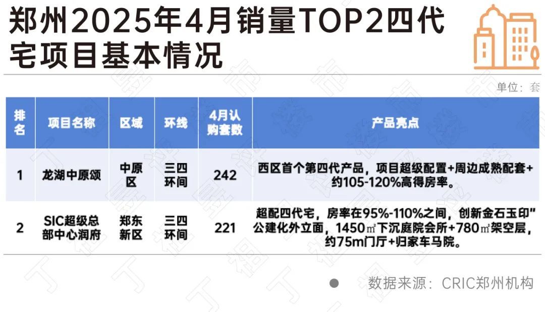 再如郑州,4月去化率稳中有增,主要得益于两个四代宅项目入市,中原区龙湖中原颂项目和郑东新区SIC超级总部中心润府项目当月认购套数均超200套以上,霸榜4月郑州项目销售榜前2名,去化速度远超其他传统项目。