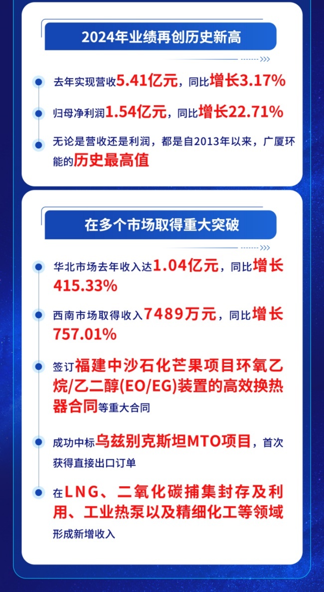 从财报上来看,广厦环能之所以能取得这样的成绩,主要原因在于,在国内市场,公司紧跟国家双碳战略加码研发,为能源、化工、冶金、船舶等行业节能降碳提供完善的解决方案。