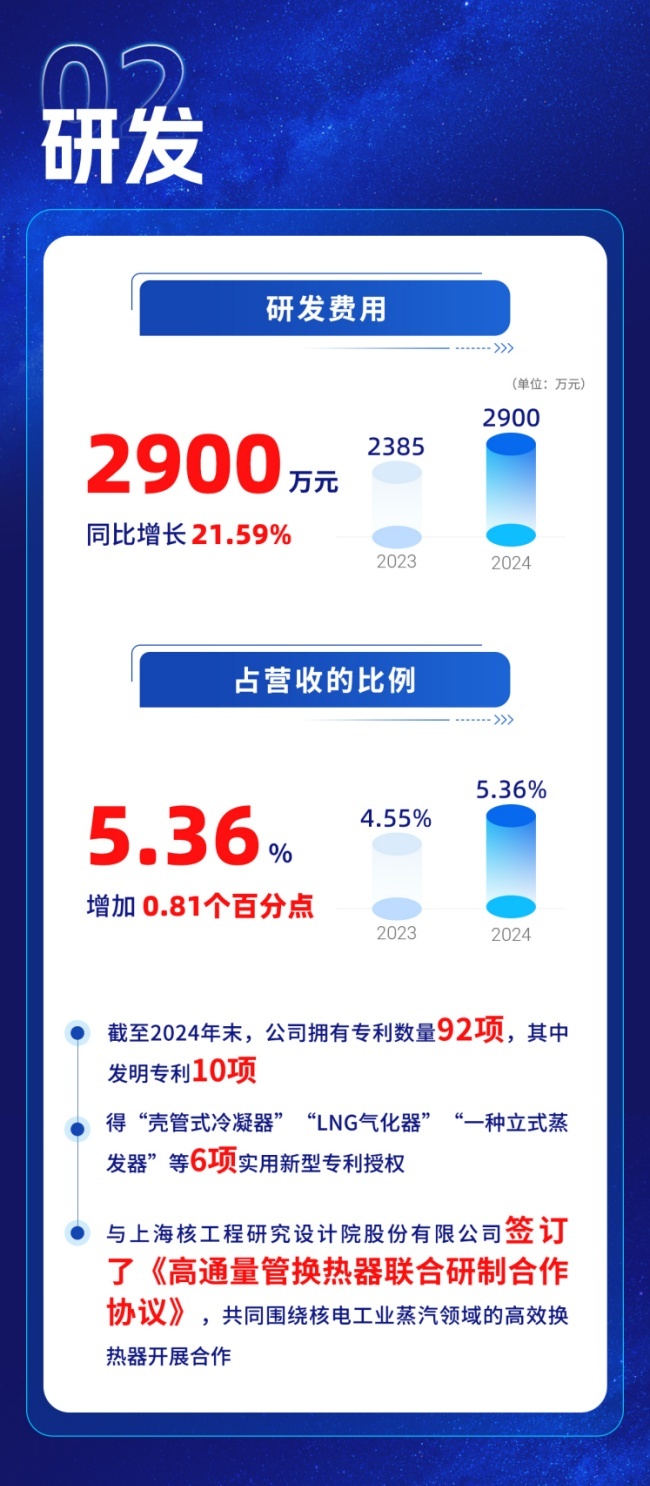 去年广厦环能研发支出为2900.26万元,同比增长21.59%。并且,公司取得了“壳管式冷凝器”“LNG气化器”“一种立式蒸发器”等六项实用新型专利授权。