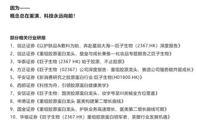 此外,华熙生物还在文章末尾列出信达证券、平安证券、方正证券、国金证券等10家针对医美行业和巨子生物的券商报告。