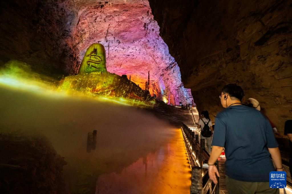 当日,湖南张家界黄龙洞景区灯光升级工程正式竣工亮相。此次灯光升级改造以“洞天福地”为主题,以“大鲵化龙”故事为引线,把天然石壁当成巨幕,将光影科技、神话故事和自然景色融为一体,为游客们打造了一场关于光影、神话与自然的奇幻之旅。
