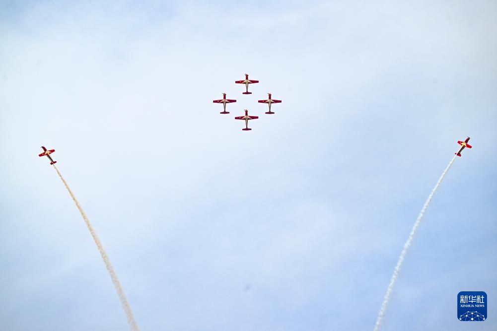 这是5月20日在马来西亚兰卡威国际海事和航空展上拍摄的飞行表演。