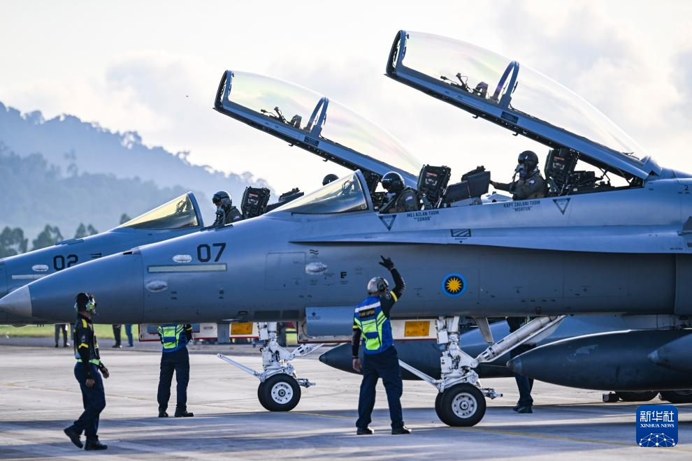 这是5月20日在马来西亚兰卡威国际海事和航空展拍摄的准备起飞的两架飞机。