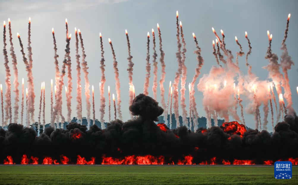 这是5月20日在马来西亚兰卡威国际海事和航空展上拍摄的模拟轰炸表演。