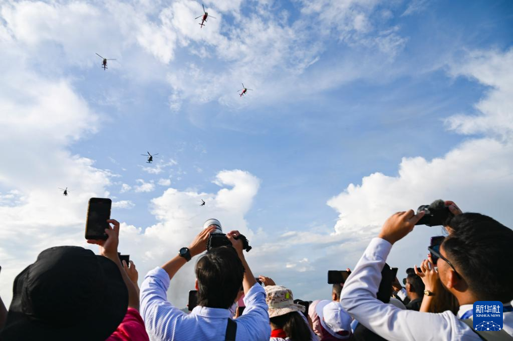 5月20日,在马来西亚兰卡威,观众拍摄飞行表演。
