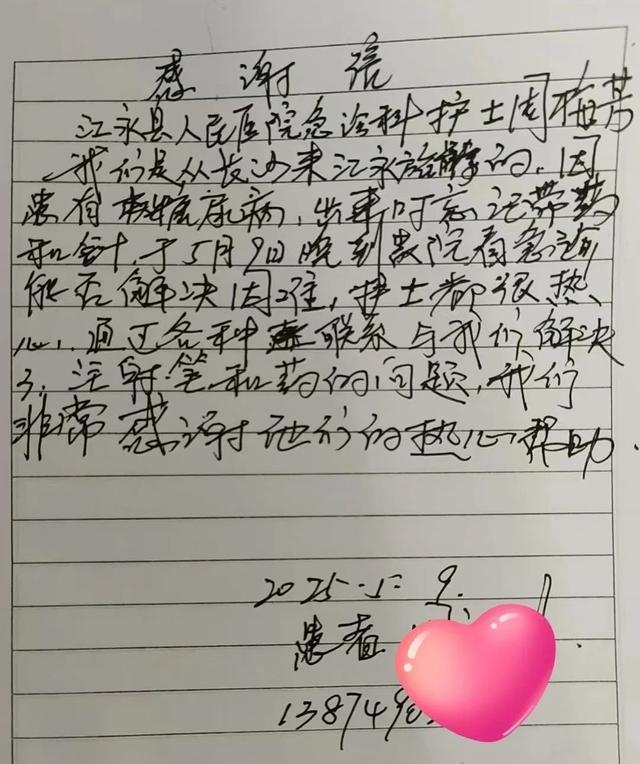 “护士们不仅专业,还像家人一样贴心,让我们在外就医倍感温暖。”周先生一边写感谢信一边动情的说道。