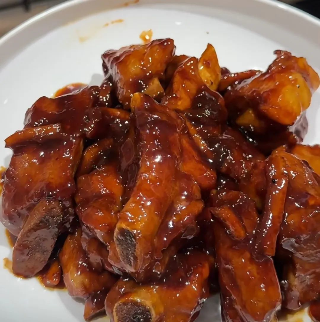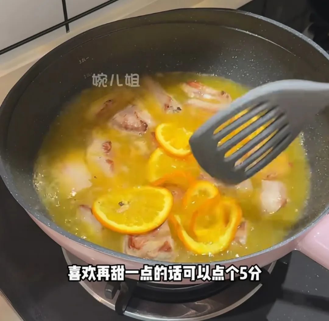 排骨焯水,两面煎,然后倒入三分糖的棒打鲜橙(爱吃甜的可以点五分)。