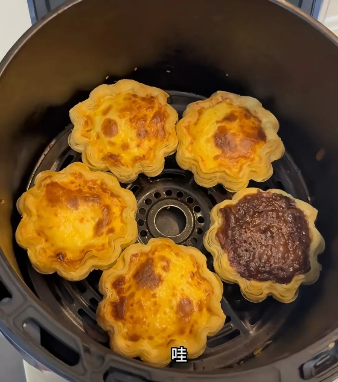 然后放进烤箱或者空气炸锅,奶香浓郁的雪王蛋挞就做好了。