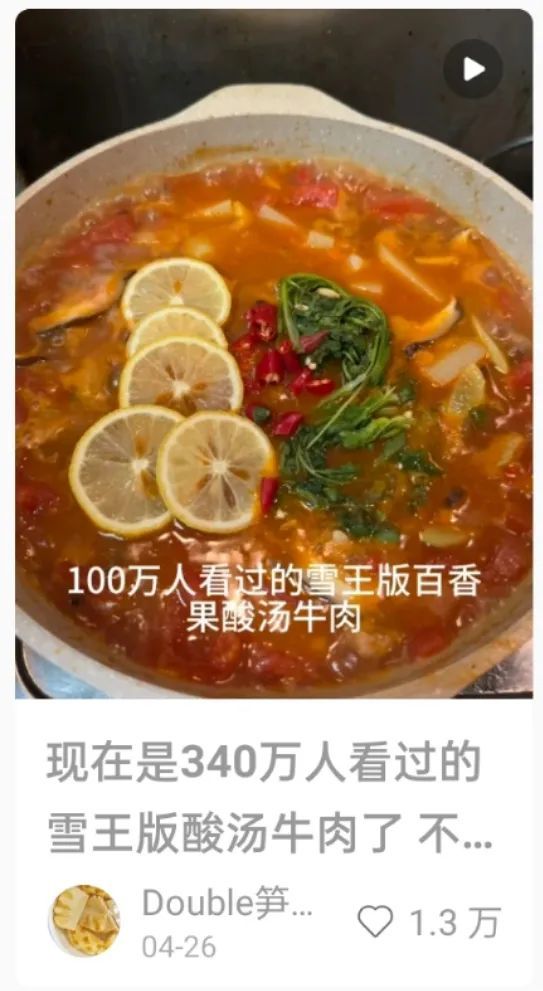 小红书上一搜#蜜雪冰城做菜,340万网友围观“雪王版酸汤牛肉”。