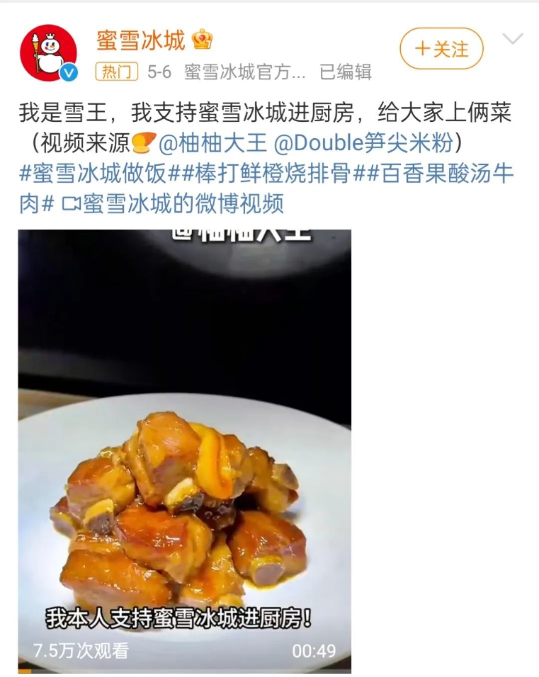 蜜雪官方更是亲自下场玩梗,把用户菜谱搬上官微。
