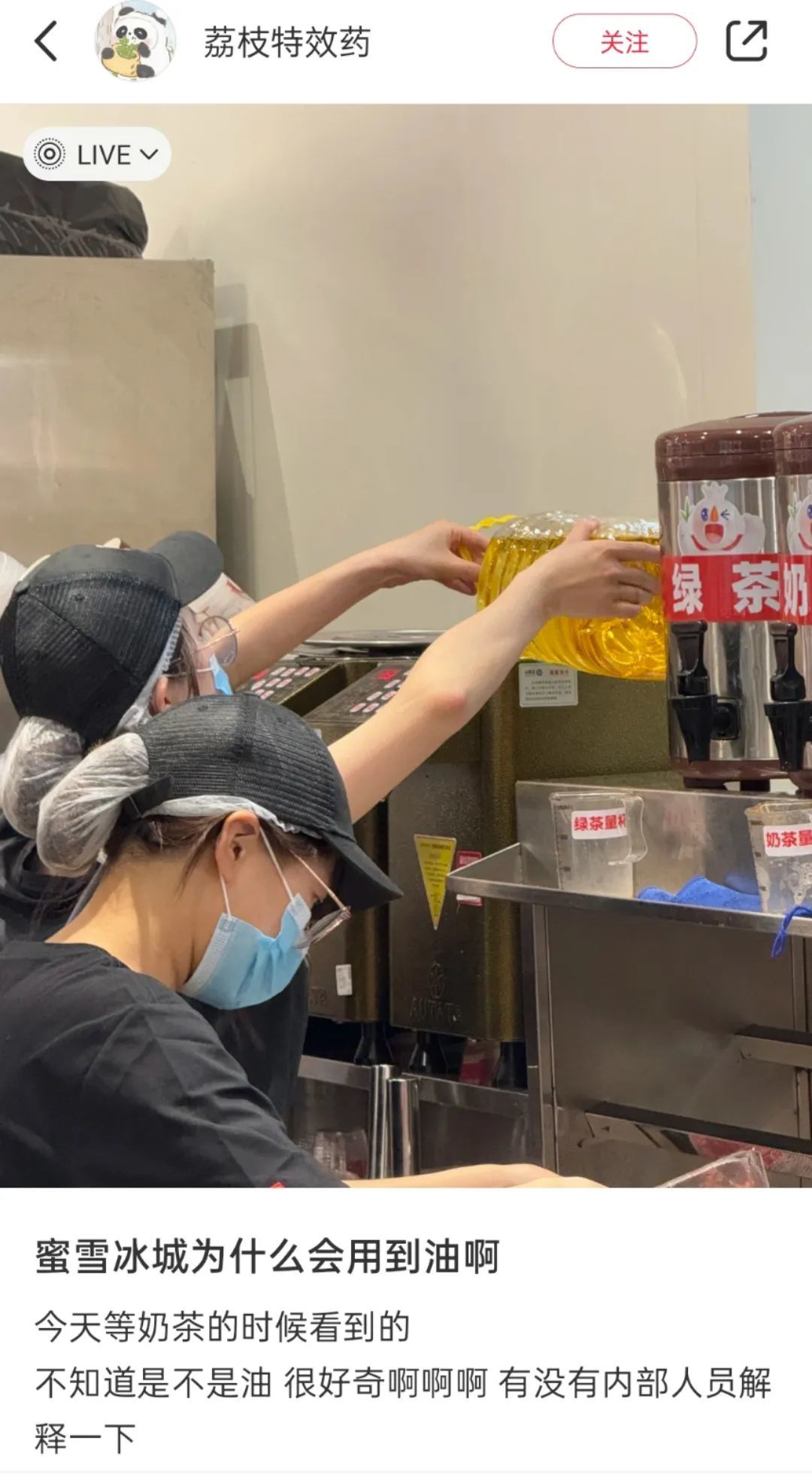 怪不得有网友在小红书问,蜜雪冰城里面是不是有油?不然怎么拿来做菜?