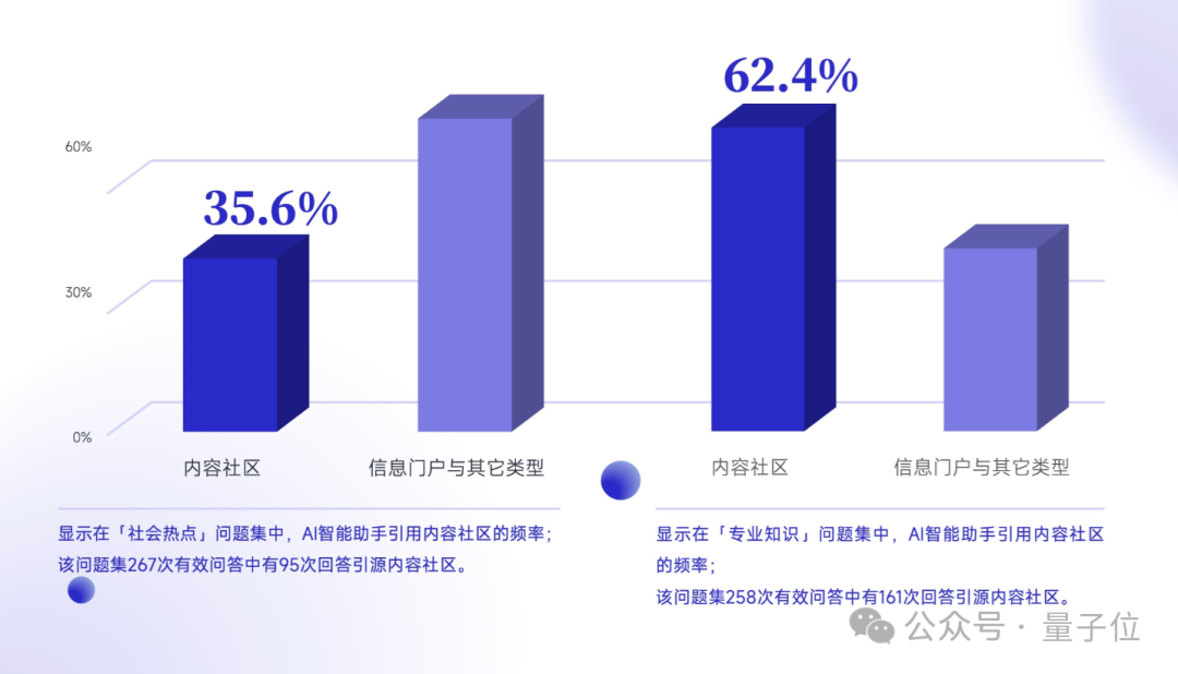 而在「专业知识」问题集中,AI助手引用内容社区的比例达到了62.4%。