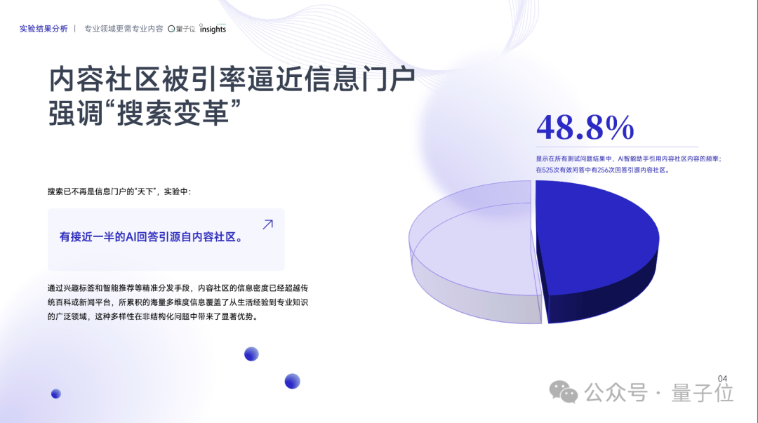 实验结果首先显示,搜索已不再是信息门户的「天下」,实验中,有接近一半的AI回答引源自内容社区。
