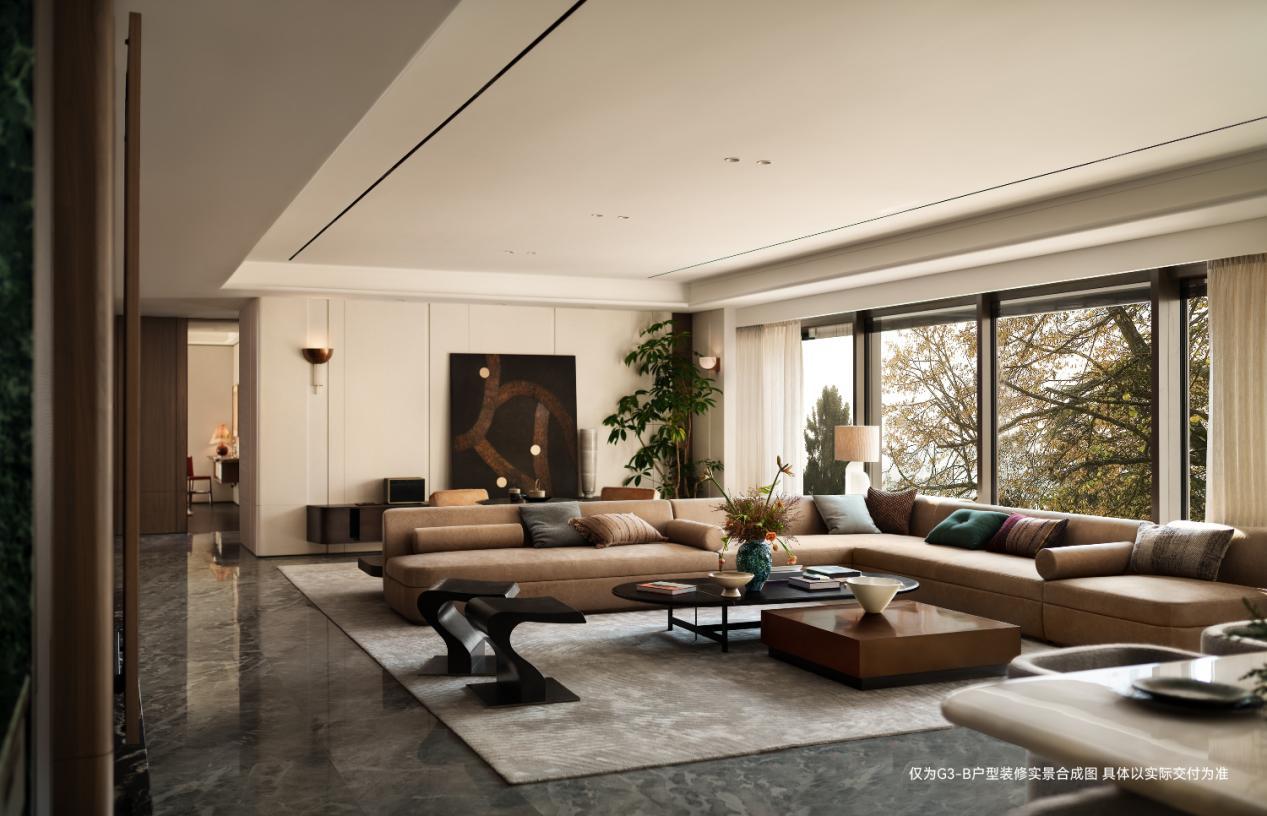 对于楼内空间,上海壹号院的设计更是打破常规,借鉴世界级顶豪的创新解法。项目采用了与纽约、伦敦等市区大平层相似的结构体系,使用框架核心筒结构打破传统承重限制,不仅提高了建筑的承重能力和抗震性能,还让室内空间具备了更大的灵活性和使用率,实现了全落地窗环绕、大横厅结构、270°弧形窗,极致的通透感、绝佳视野与豪宅空间所需的独立性、全景仓视野被发挥的淋漓尽致,堪称新一代豪宅的居住体验标杆。