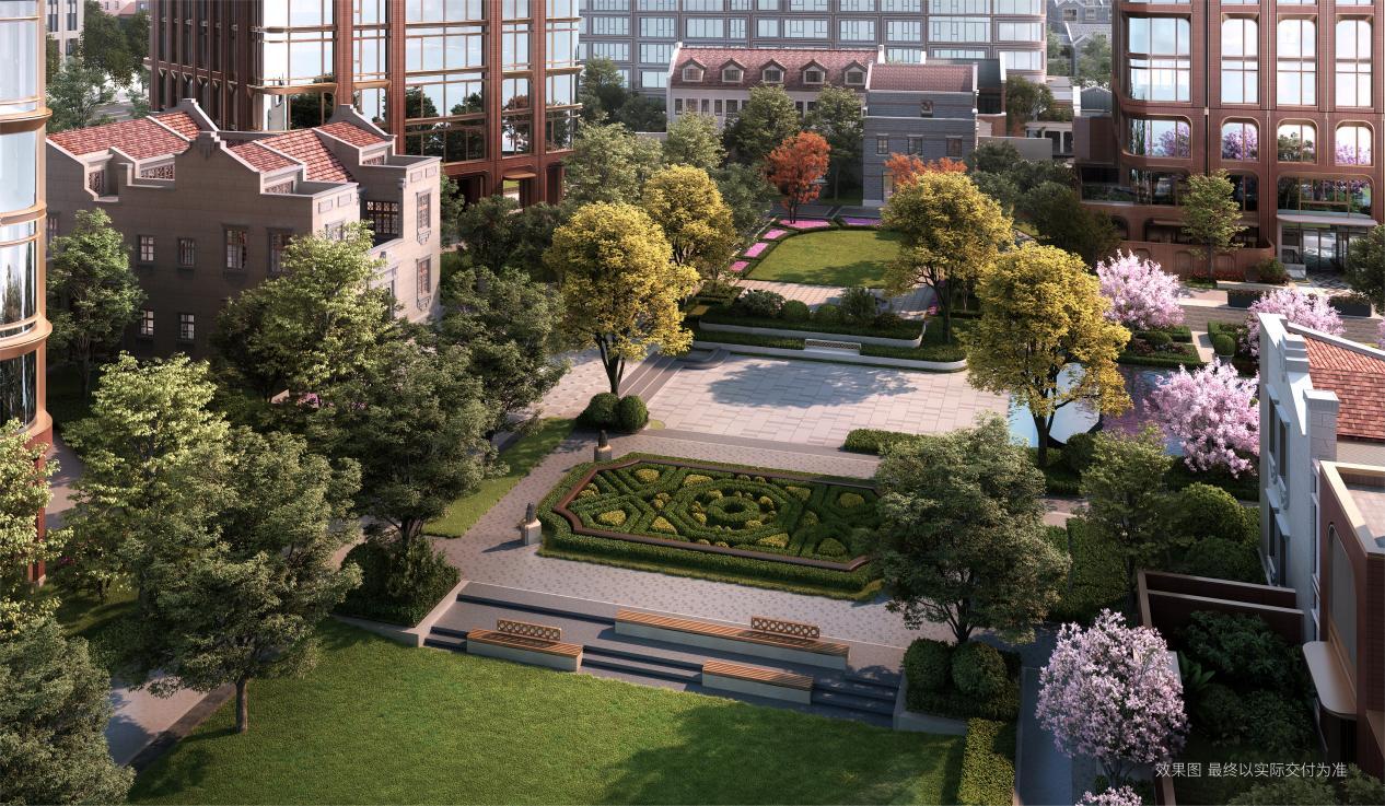 园林景观是距离业主最近的公园,上海壹号院凭借项目地块的整体性优势,借助设计大师之手,汇聚世界名园的造园灵感,打造了上海核心板块难得一见的约1.8万㎡海派花园,将风貌区的街坊巷弄肌理与现代景观完美结合,通过南北95米×东西60米的十字景观轴线串联五大主题花园,塑造了城市社区极度稀缺的大尺度、集中式景观体验,也让业主们在城市繁华地带拥有极为稀缺的大型园林「景观主权」。