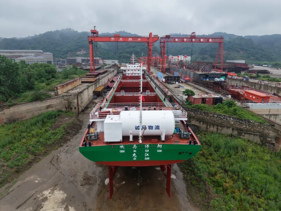“诚马浔阳”轮由九江诚马物流有限公司委托江西华东船业有限公司建造,总长119.8米、宽19米、深8米,采用集散两用设计。该船最大的亮点在于以清洁、经济的液化天然气(LNG)作为动力,相较于传统燃油船可减少23%的二氧化碳排放,实现“零黑烟、低噪音、高效能”的绿色航行目标。同时,它还能有效减少硫氧化物、悬浮颗粒物、氮氧化物等污染物的排放。