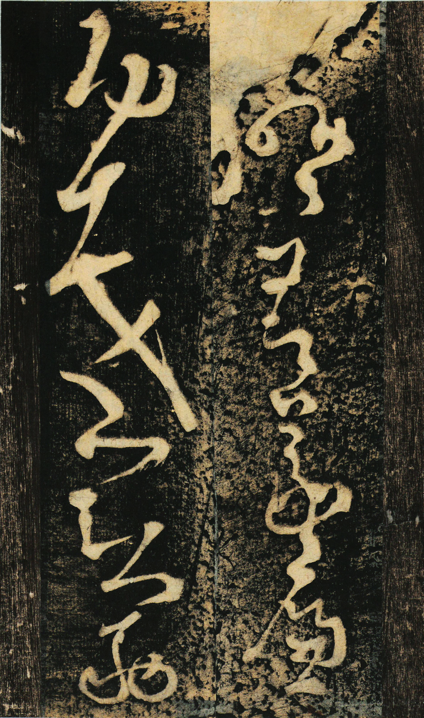 《断千字文》现仅存六块石刻,只剩二百余字。因所书狂草,后人多将其视为张旭书作。如果说《肚痛帖》还余留着“二王”一系草书的一丝优雅,那么《断千字文》则完全是放荡怪诞的。在它上面,我们已经很难感受到与传统的联系,更多的只是个人面目的展现。《断千字文》的用笔时常有些琐碎,它的结构也经常显得破碎压抑,仿佛被刻意压缩,制造了紧张,而那些舒展开放的结构又经常毫不讲究,就像任意为之。线条中不时有生硬、油滑、尖刻之处,完全没有张旭的《肚痛帖》圆熟轻松。它出现各种各样的破绽,仿佛真正是一个醉后之人,已经难以控制自己的毛笔,却仍执意要不断地书写下去。于是,我们除了看到它的快速运动,同时也感觉到线条中的颤抖与难以自持。也许,它很可能是当时狂草风潮中的跟风之作,而未必是张旭自己的作品,但正因为有这类被归为张旭名下的较为拙劣的狂草,令张旭遭受“变乱古法”的骂名。即便它未必是张旭的杰作,但从中也能看到狂草的不少信息。首先,它说明狂草的流行程度,狂草已蔚然成风,不少人都跃跃欲试。其次,尽管它有各种各样的缺点,但它追求激情的表达与宣泄,注重奇异的面貌,这是狂草的基本追求。
