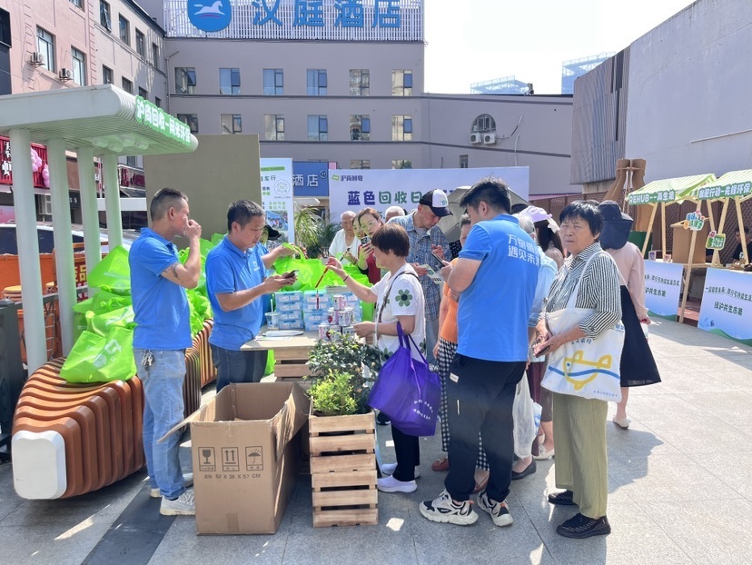 作为浦东新区“蓝色回收日”品牌活动的重点场次,本次活动在2024年全区23309场回收活动日的基础上进一步升级,通过固定化、高频次的回收服务与创新宣传,强化“垃圾分类就是减碳”的公众认知。潍坊新村街道结合辖区特色,以“绿沪共生市集”为核心亮点,联合十大联盟品牌,打造了一场集环保科普、低碳消费与趣味互动于一体的绿色盛会。
