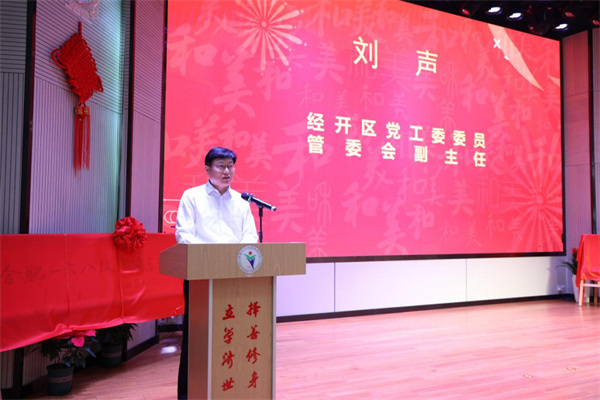 为深化学校管理体制和办学模式改革,优化教育资源配置,发挥高品质教育资源辐射带动作用,5月20日上午,合肥一六八玫瑰园东校教育集团和北校教育集团在合肥经开实验学校举行揭牌仪式。经开区工委委员、管委会副主任刘声,合肥一六八中学教育集团党委副书记、校长罗在兵,经开区社会发展局党委副书记李丰尧出席活动,区属相关部门负责人、合肥一六八玫瑰园学校各教育集团校长室及部分师生和家长等代表参加揭牌,经开区社会发展局党委委员、副局长杨会谦主持揭牌仪式。