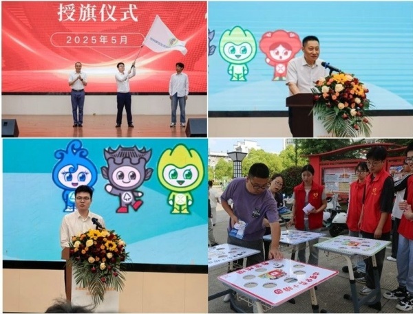 市政府副秘书长李刚向“净池”生活垃圾分类志愿者队伍授旗,池州市城市管理局主要负责同志及志愿者代表做了发言。