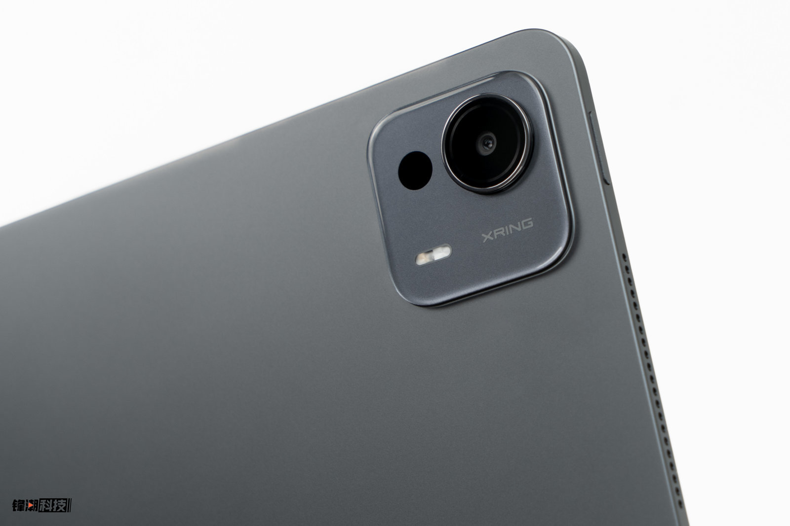 尽管影像并非平板的重点,但小米平板 7 Ultra 依旧在模组的部分下了不少的功夫。摄像头+红外的配置构成了一大一小两个开孔,圈在圆角方形的装饰面中。这个装饰面还做了精致的边缘过渡,微凸圆润,触感也很高级。