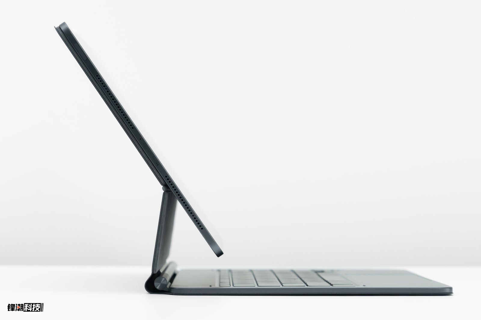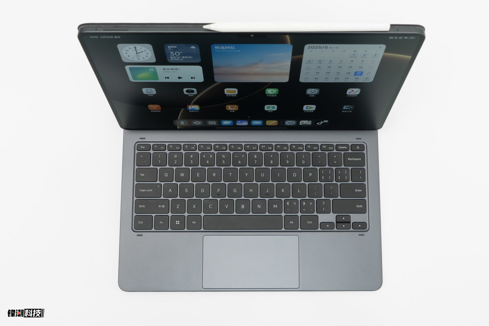 这一次小米平板 7 Ultra 的键盘盖配件也迎来了巨大的升级。首先,这款键盘盖换上了新的悬浮设计,不需要再打开背后的支架,也能获得更舒适的角度与输入姿势,体验还是相当不错的。