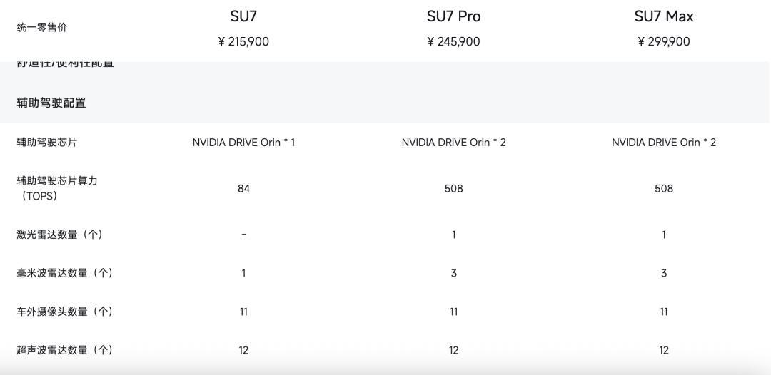 心照不宣,这几乎就是 SU7 标准版上存在的“主动安全”、“智驾能力”不足的补齐。