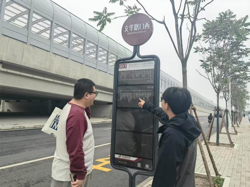 站位增设前,学校师生出了南门,需要向东或向西步行10多分钟才能乘坐417路,而且还需要过一个十字路口,影响了师生们的出行。417路车队在接到学校师生的诉求后,第一时间联合学校师生代表、属地交通局等部门进行实地走访调研。