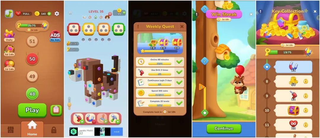 值得注意的是,《Screwdom》并非出自大厂,而是由越南团队iKame Games打造,据称规模在80人左右。这支团队成立于2014年,迄今开发和运营超百款产品,曾位居全球手游下载榜第一。