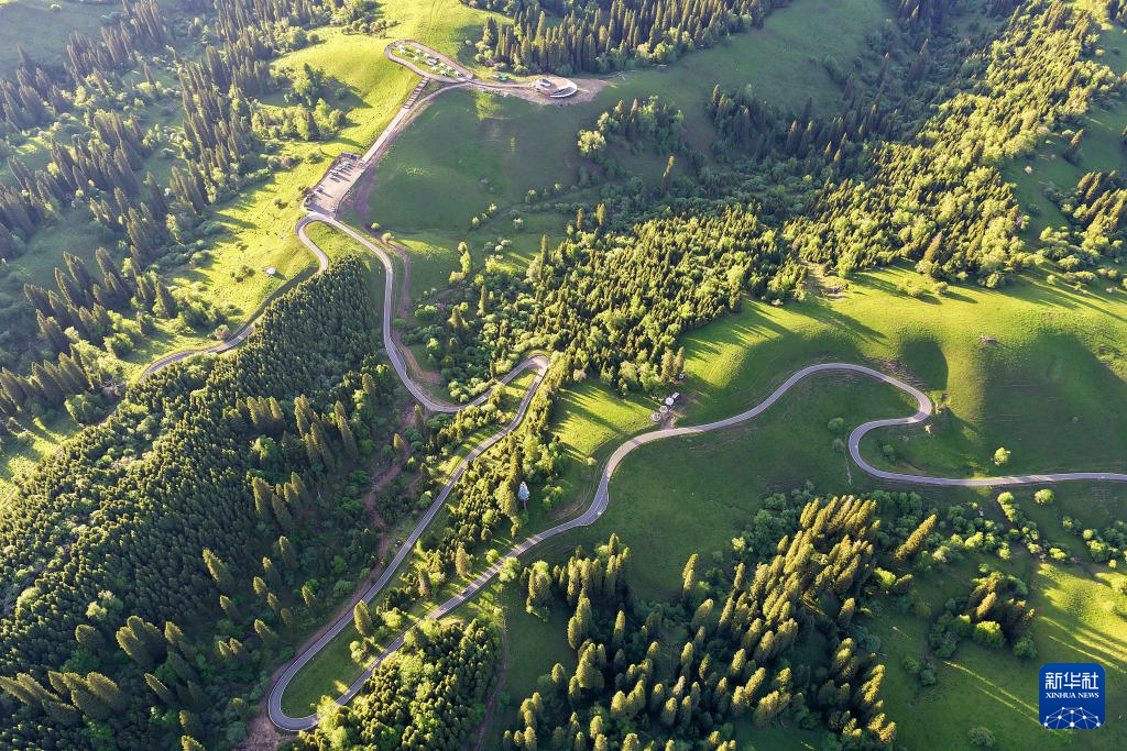 5月23日拍摄的晨光中的那拉提草原(无人机照片)。