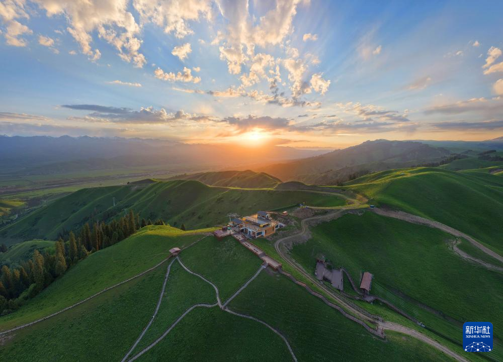 5月23日拍摄的晨光中的那拉提草原(无人机全景照片)。