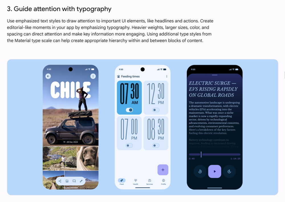 尤其是博文中提到的“使用强调性的字体风格将用户的注意力引导到主要UI元素上”,类似这种同时需要第一方和第三方配合才能实现的效果,不仅在本次测试中完全没有出镜,甚至恐怕要在Android 16正式版之后很久才能见到成效了。